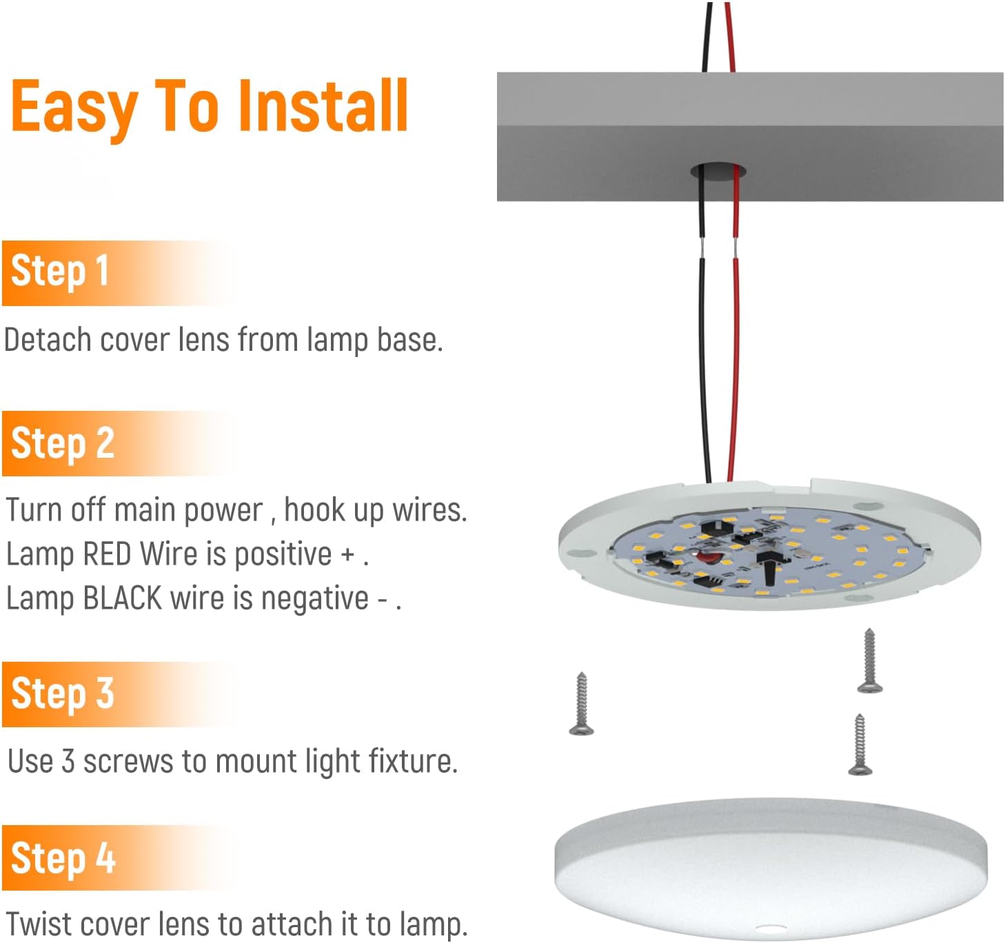 The optimized LED array and frosted polycarbonate lens work together to produce comfortable, glare-free diffusion ideal for ceilings, cabinets, and storage areas. Installation requires just three screws (hidden under the cover lens) for tool-free surface mounting that preserves your interior surfaces.