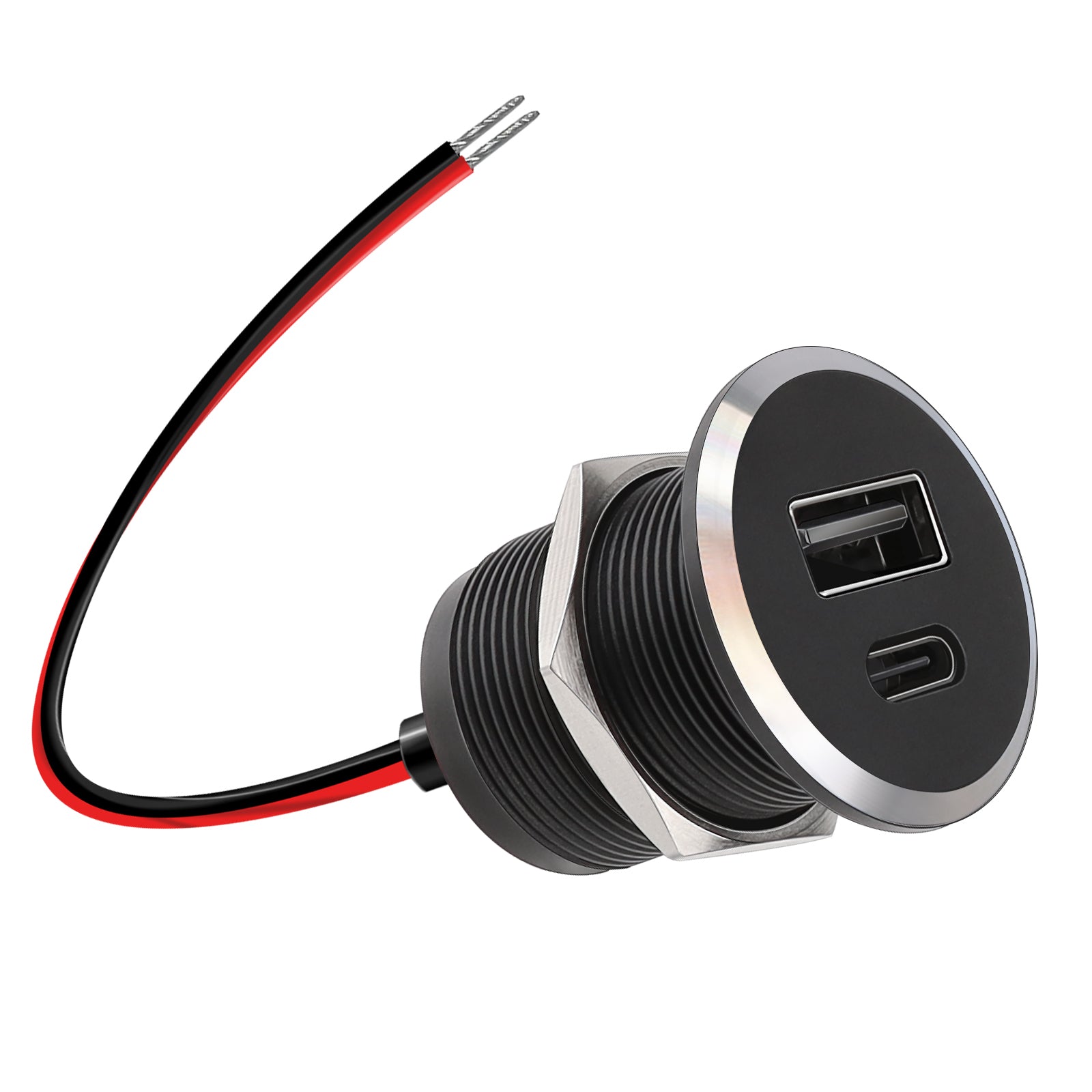 This all-aluminum RV USB charger delivers fast, stable charging with dual USB-A & USB-C ports (24W max, 5V/9V/12V), featuring a compact 30mm-depth recessed design for seamless integration into cabinets, dashboards, or walls. Its durable aluminum construction ensures superior heat dissipation and safety, while built-in protections guard against over-current, overheating, and short-circuits. Compatible with 12V-24V systems (RVs, boats, trucks, etc.), it offers a sleek, flush-mounted finish for a clean look.